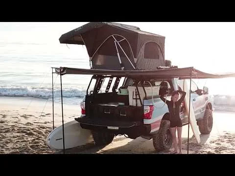 From its off-road tires to the rooftop tent, the Nissan TITAN Surfcamp is an all-inclusive beach cruiser featuring surfboards, paddleboards, fishing rods, a solar-powered shower and more.